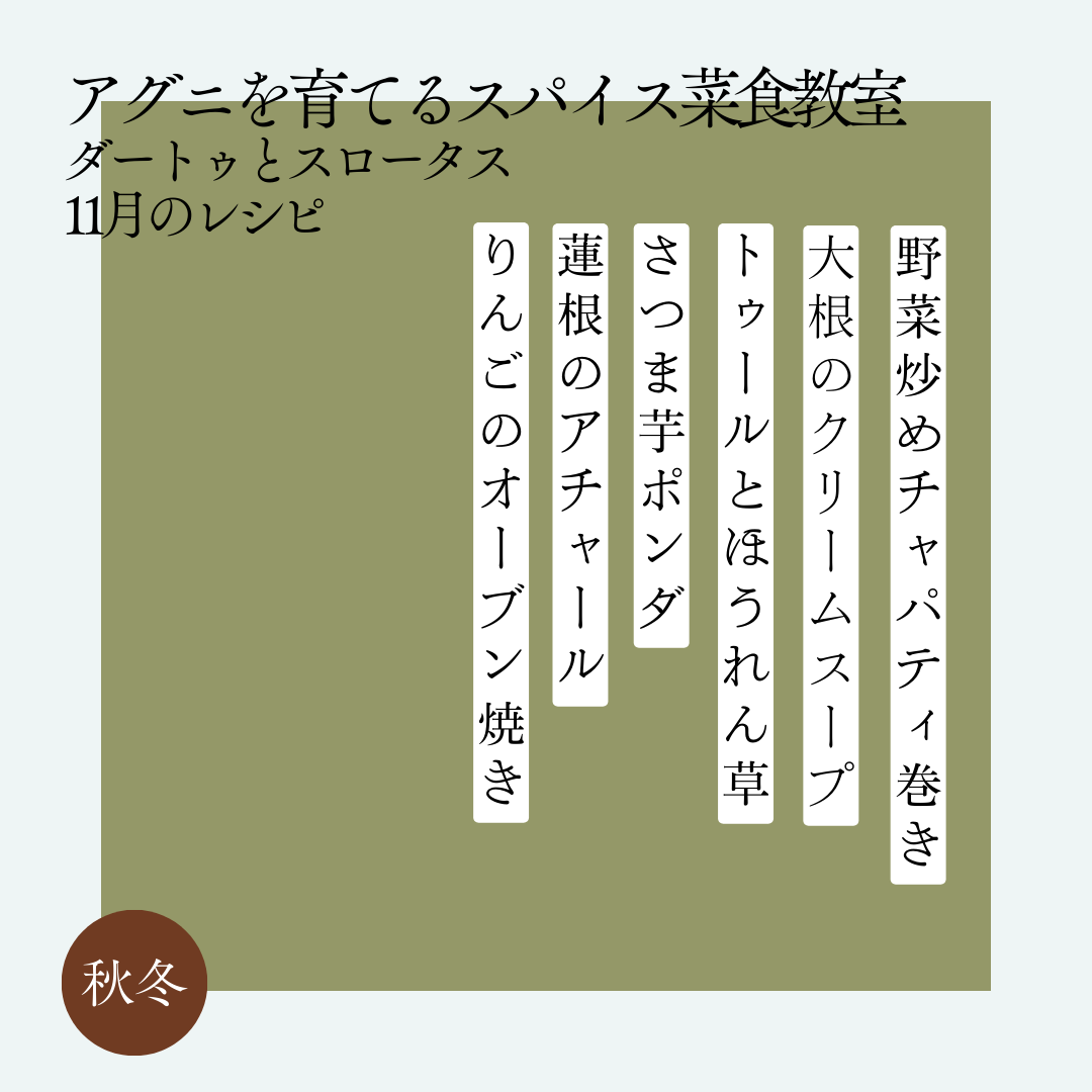 アグニを育てるスパイス菜食教室 11月