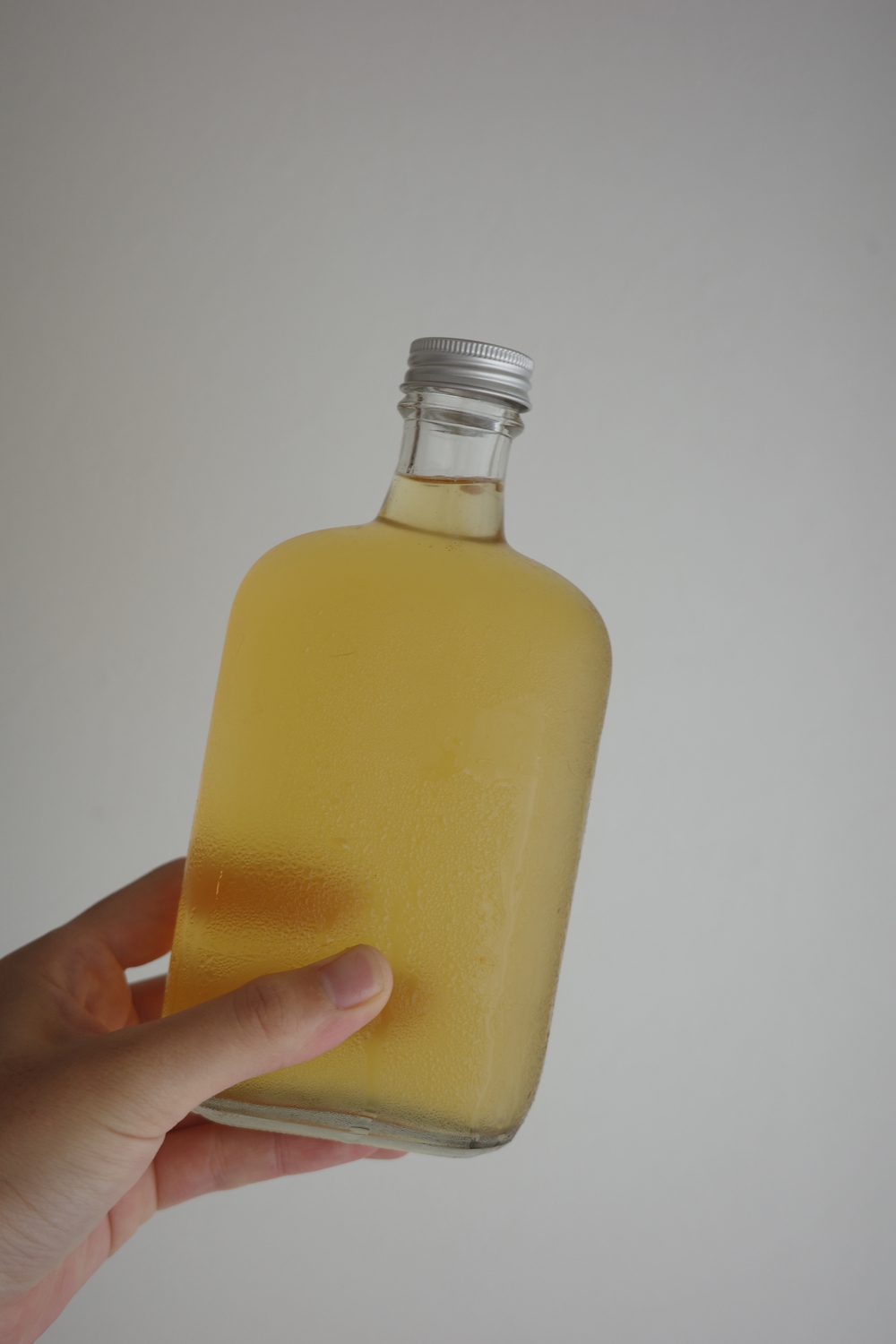 • 漉してシロップのみ瓶詰めし、冷蔵庫で保存する。