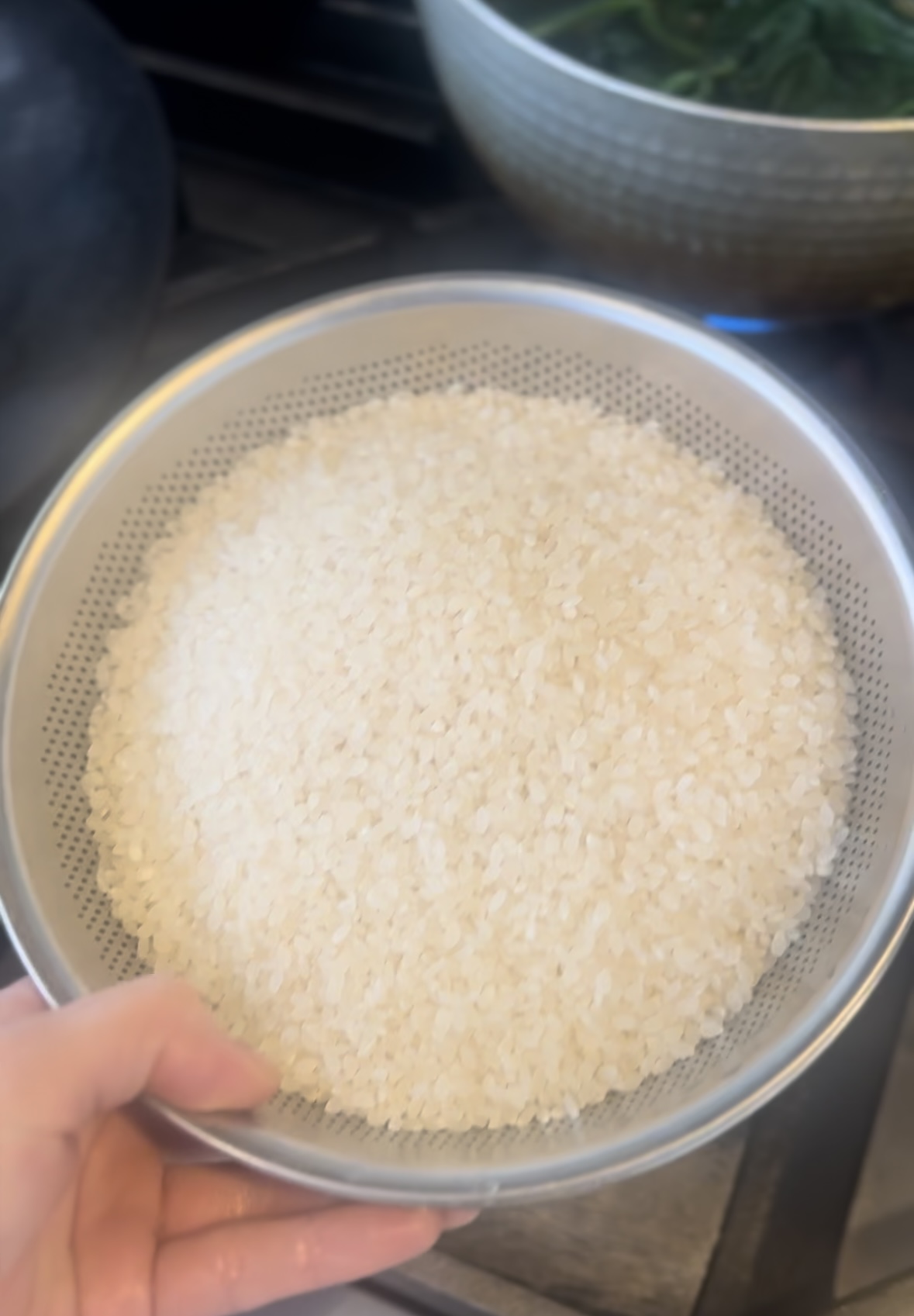 作り方は簡単。洗ってザルにあげておいた白米を、フライパンに加え、弱火でじっくり乾炒りするだけ。
