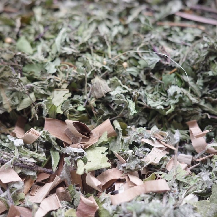 桃の葉はアーユルヴェーダというよりは、日本の薬草の知恵で古くからあせもや湿疹に効くと重宝されてきたのを知っていてブレンドしました。