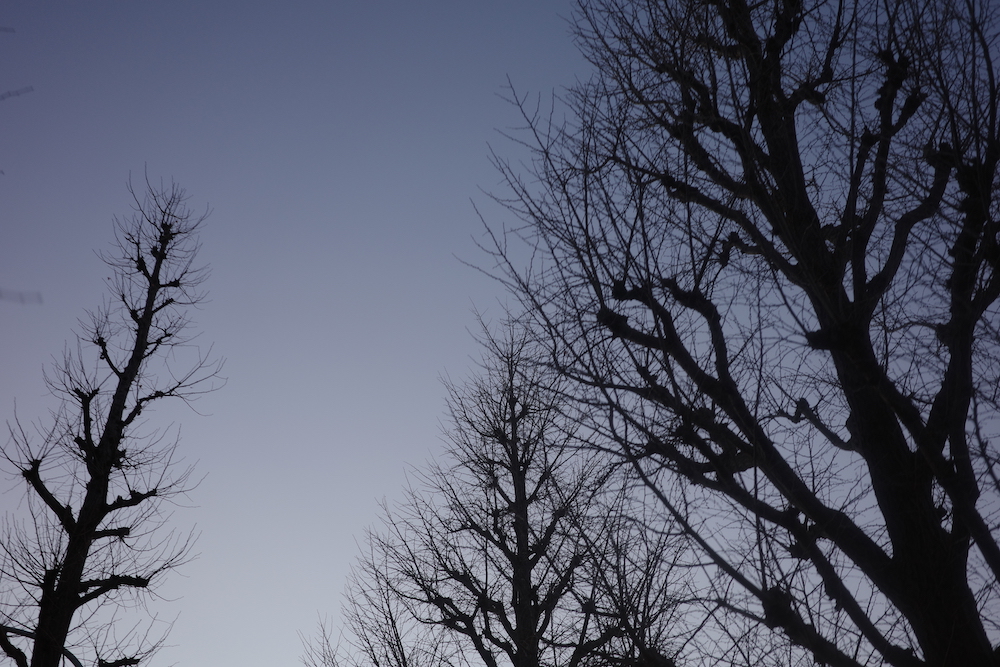 冬の朝はこんな風に枯れた木の姿が美しいし、